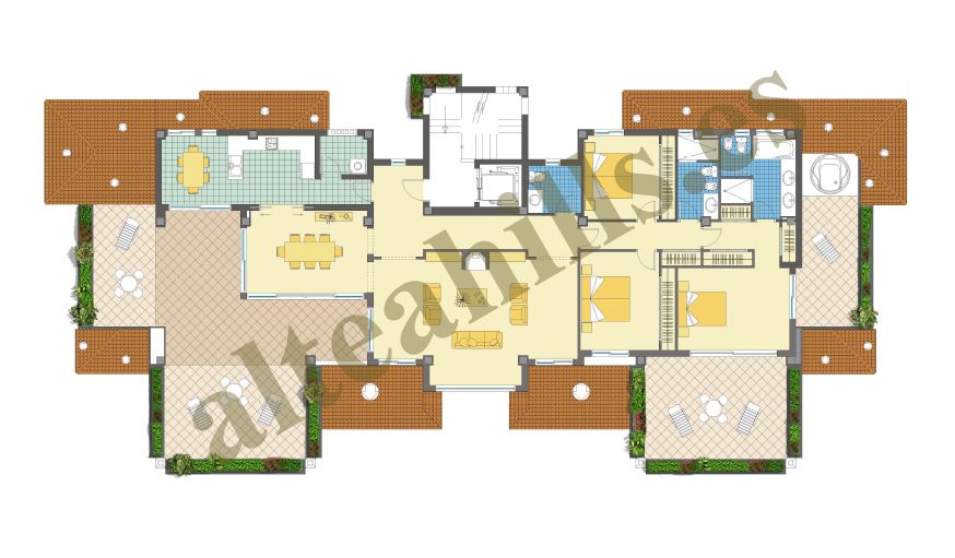 The large wrap-around terrace is another sanctuary, featuring a spa area and jacuzzi with uninterrupted views of the Mediterranean—the perfect setting for relaxation or entertaining guests. The Los Almendros complex itself is a private residential community of only four buildings, each with just seven homes, ensuring exclusivity and privacy. Residents enjoy manicured gardens, an extensive natural lawn, a large communal swimming pool, and the peace of mind provided by gated access with 24/7 video surveillance.