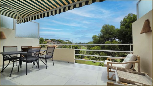 <p> Bénéficiant d'une orientation sud idéale, l'appartement bénéficie d'une abondance de lumière naturelle et d'une vue imprenable sur la mer Méditerranée et les collines verdoyantes. Ses deux chambres spacieuses offrent suffisamment d'espace pour se détendre, tandis que les deux salles de bains élégantes, dont une en suite, offrent un sanctuaire privé et indulgent.L'espace de vie décloisonné fusionne harmonieusement la cuisine, la salle à manger et le salon en un espace sophistiqué et accueillant. L'élégante cuisine de style américain est dotée d'appareils haut de gamme et de nombreux rangements, répondant à tous les désirs culinaires.