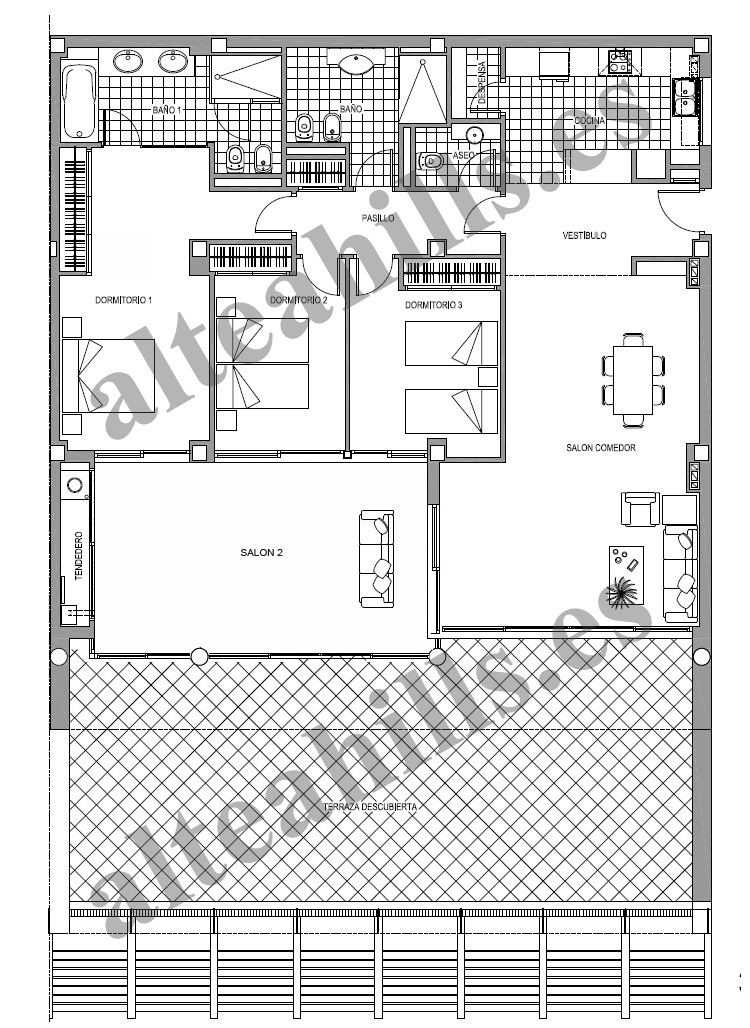 Luxe appartement in het beste wooncomplex van Altea Hills: Orquideas. Dit appartement met 3 slaapkamers heeft een perfecte ligging aan de baai van Altea, met een terras van 100 m² en 70 m² verdeeld over twee woonkamers. Het appartement beschikt over vloerverwarming, airconditioning/verwarming, drie badkamers en een designkeuken met hoogwaardige apparatuur (Bosch en Siemens). ORQUIDEAS DE ALTEA HILL Orquideas is een exclusief wooncomplex met 2 en 3 slaapkamers, gelegen op een bevoorrechte locatie in het Altea Hills Estate. De woningen beschikken over ruime terrassen, variërend van 88 tot 155 m², van waaruit u kunt genieten van het heerlijke mediterrane klimaat en het spectaculaire panoramische uitzicht op de zee en de bergen. Deze woonwijk biedt exclusieve diensten dankzij de faciliteiten van het 5-sterrenhotel Meli Altea Hills: restaurant, fitnessruimte, paddle-tennis- en squashbanen, het gezondheids- en schoonheidscentrum Spa Salux Hills, plus 24-uurs beveiliging en bewaking. En voor liefhebbers van het buitenleven, te land of ter zee, ligt het landgoed vlakbij de Don Cayo Golf Club en de Luis Campomanes Sports Marina. De woonwijk Orqu deas biedt appartementen met 2 of 3 slaapkamers op het zuiden, met een buitenzwembad en een parkeerplaats in de garage, inbegrepen in de prijs.Type |