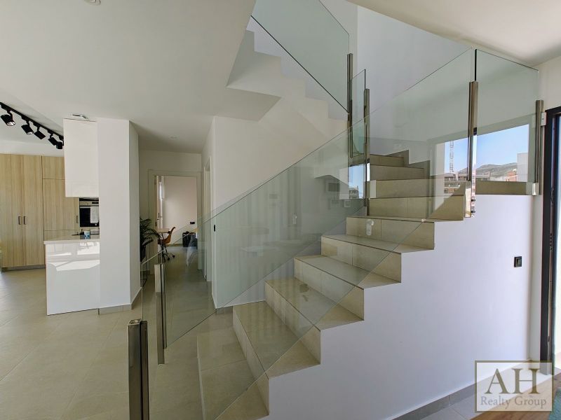 Discover the epitome of modern living in these newly constructed 3-bedroom, 2-bathroom villas nestled in the tranquil enclave of Finestrat. Nestled near the verdant golf course, these architectural masterpieces offer breathtaking panoramic views of the encompassing mountains, golf fairways, and the azure expanse of the Mediterranean Sea from multiple terraces.
