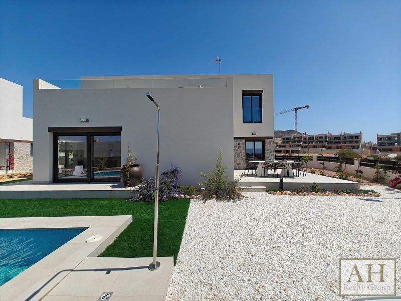 Development located a few kilometres from the Mediterranean beaches, at the foot of Puig Campana at 250m high, so the views will leave you amazed, and if you are a golf lover you can not find a better place located because it has numerous courses of the highest level.numerous courses of the highest level.Plots between 350 and 400 m2 approximately, 3 complete bathrooms (2 en suite). 3 double bedrooms.On the ground floor spacious open plan lounge-dining-kitchen with double height lounge, fitted kitchen including peninsula overlooking the lounge and views to the swimming pool, double bedroom with fitted wardrobe.On the first floor master bedroom suite with dressing room, private bathroom and direct access to the solarium, and bedroom suite with built-in wardrobe and private bathroom.- Large private outdoor areas of almost 300 m2 (porch and private garden, with option of English patio)**.- Private swimming pool of 7x3 m.- Parking space inside the plot, (with option for a second parking space, as an extra)**.